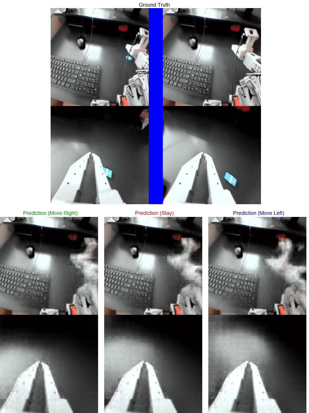 There’s still a lot of room for improvement in the predicted frame image quality, but I think the action conditioning is clear enough to try to use the model in a robot control task. My next goal is to close the loop and try to get the SO-101 to center its view on an object using the world model.
