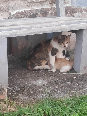 I stopped for the day at Priesca, about 3km from Sebrayo, my intended destination. The albergue, La Rectoral, turned out to be wonderful, with a friendly host called Susana. Also present at the albergue were: Jana; the two French ladies; 4 Spanish guys I'd seen in passing; Lee, from Taiwan; and a momma cat and her kittens <3 Lee shared his pasta with me - there were no supermarkets or restaurants nearby, as this part of the route was more rural than before. From my own supplies I also ate an apple, a pear, a banana, and an Alpro yoghurt (which I now know is on the BDS boycott list, woops). After dinner I spent a long time hanging out with the kittens.