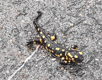 While absorbed in a map on my phone, I got a fright from a flash of orange and black stripes in the corner of my eye. It appeared to be a writhing, snake-like creature, but it disappeared before I could get a proper look at it. I don't think there are snakes like that in Spain, so it was probably a salamander.