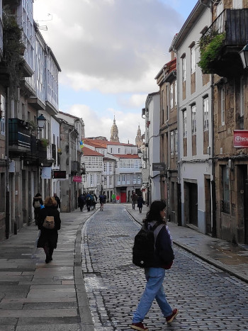 After hurriedly walking ~22km along wooded paths, I was delighted to finally catch sight of the cathedral in Santiago. The approach to the city was uncomplicated. I ran into Manolo, the Spanish gentlemen who'd initially left me with the impression that he was a braggart, but who had since rehabilitated his image.