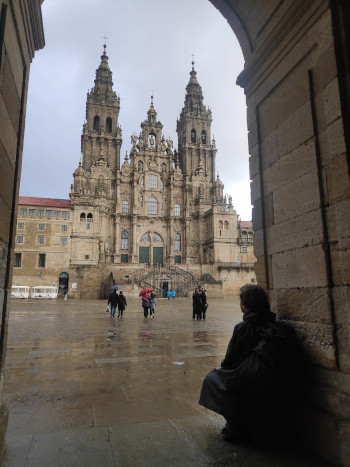 Then I was walking the streets of Santiago, and soon arrived at the endpoint of the whole trip: the plaza in front of the Santiago cathedral. I enjoyed the ambience from the crowds, the shouts of excited and emotional pilgrims, and the imposing structure of the cathedral. I was hungry and cold, though, so after basking in victory for a short while I went to Hotel Universal, where I was planning to stay. On my way there, I came across Kobi, the 17-year-old Dutch kid. We had a pleasant chat and he told me that Tony, his Camino Dad, had already returned to England.