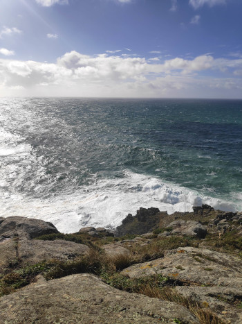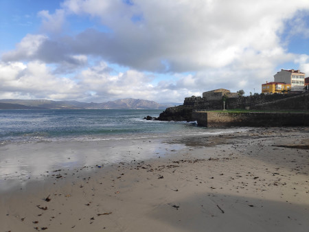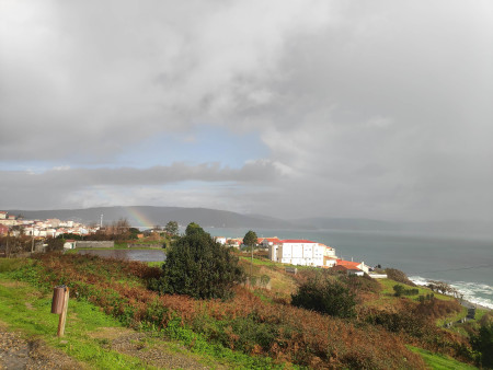 I met Ivano back at the town of Finisterre. We went for a drink and walked to Playa Mar de Fora. The waves were very strong. I hoped to find a scallop shell there, to commemorate my Camino, but it was probably better for the local ecosystem that I didn't. I did find 5 teeny tiny shell fragments that I planned to give as gifts. Overheard an American talking about various dead people and everything he had "been through", he said that he had "processed it" and "left it behind"... or something. It was nice talking to Ivano, as he told me about his experiences from years of doing the Camino. I think he also said he lived in some sort of hippy commune for a while. And he was currently living with his brother and sister in Scotland. Returning to the town, we went to a café owned by a German couple, where I had a nice tomato soup.