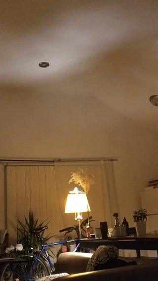 They remind me a bit of candle carousels that I would see at my grandparents' house, but in this case they are cut from recycled aluminum soda cans and spin on sharpened tips of wire from the heat rising off the lamp.