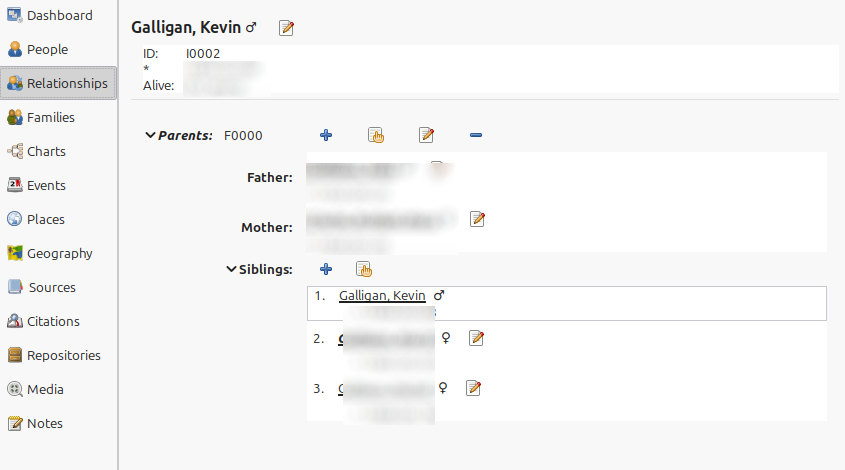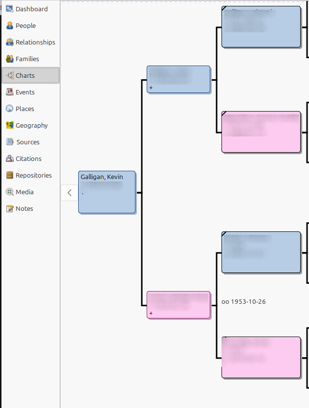 A few years ago, I was seized by the sudden, irrational, and self-destructive urge to learn more about my family history. The software I've been using since then to construct my family tree is Gramps. It's offline, open source, and somewhat moddable, so it was a natural choice for my code-brained self. The alternative would be closed, paid, online-only services like Ancestry.