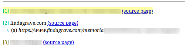 Sources and citations are actually independent entities in the Gramps database. You can list all the sources and citations in your tree, tweak their attributes, and so on. A convention I've adopted is to assign a "Quality" attribute to all my sources - a census form is usually "good", while a random internet article might be "mediocre". When generating my genealogy website (more on that later), I can present "good" citations differently from "mediocre" ones so that it's clear how reliable the information is.