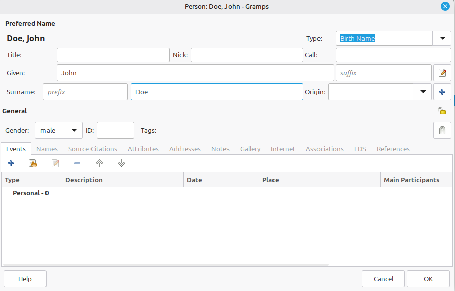 First, there's the standard stuff. Create a new person. Set their name and gender. If known, add Birth and Death events (with dates). Create a family and assign the new person as one of the parents. Add their partner. Add their children. Add a Marriage event to the family, if applicable.