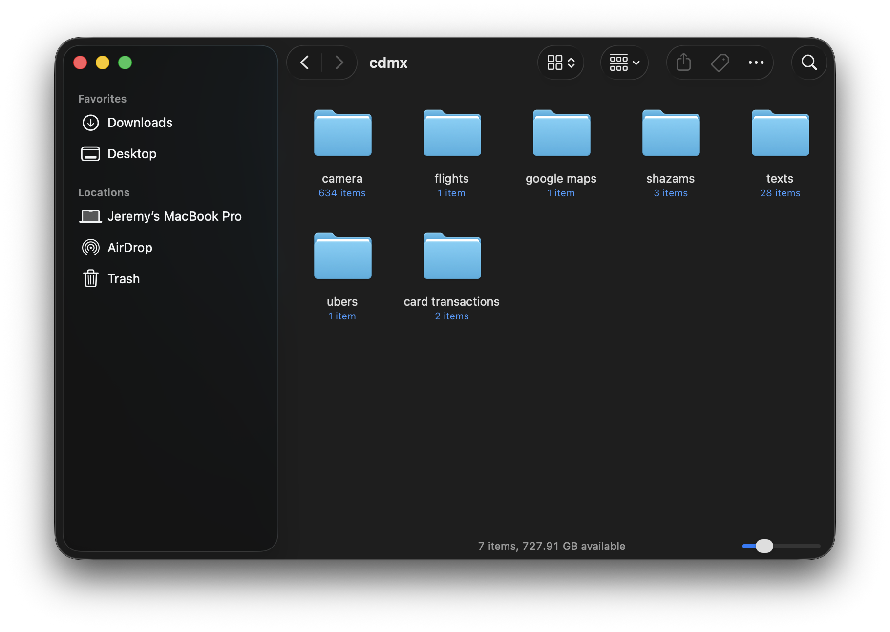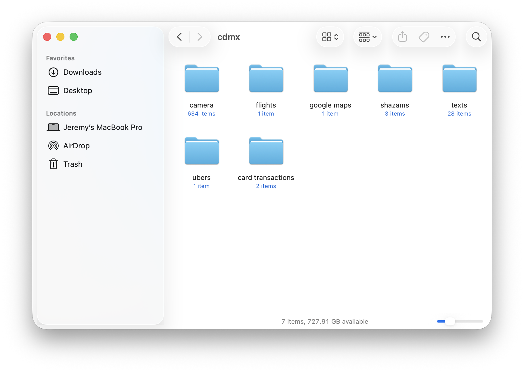 On top of that, I exported my location timeline from Google Maps, my Uber trips, my bank transactions, and Shazam history. I would ask Claude Code to start with the photos and then gradually give it access to the different data exports.
