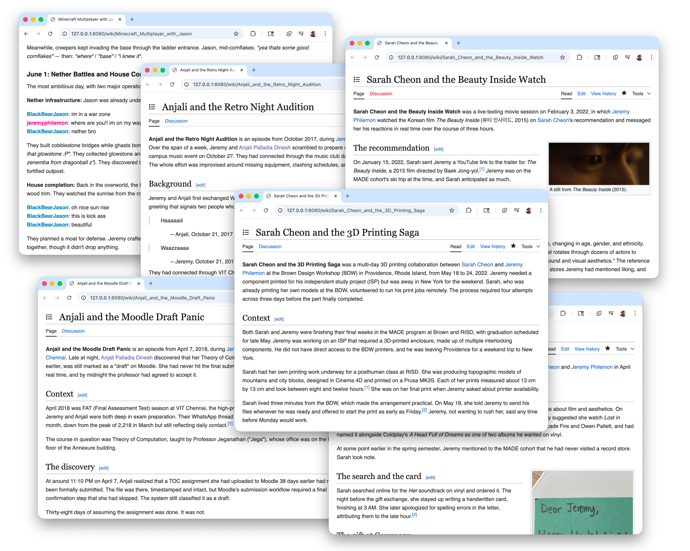 Oh and it's genuinely fun! Putting together the encyclopedia felt like the early days of Facebook timeline, browsing through finished pages, following links between people and events, and stumbling on a detail I forgot.