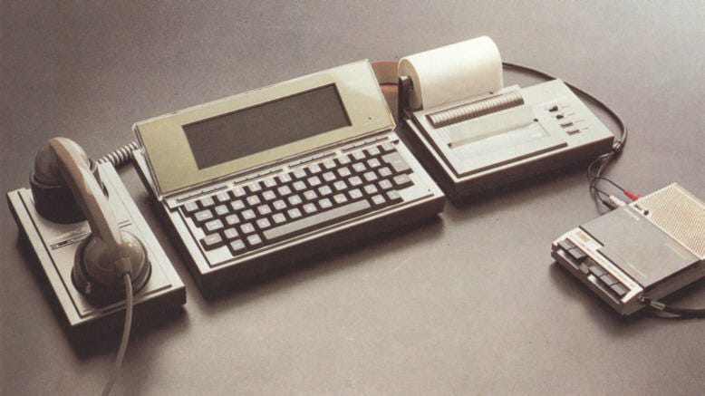 In 1983, Olivetti released their first laptop. This was largely the same machine as the TRS-80 Model 100, but it had a physical redesign with a tilting screen. Base RAM was 8K and expandable to 32K. While the Model 100 was a success, the M10 was not. The machine was discontinued after two years.
