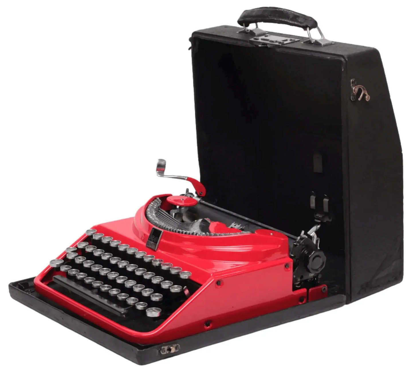 Following the success of the M40, Adriano was promoted to the position of general manager in which he handled the management of all day to day activities of the company. That same year, the company released the Modello Portatile 1, or MP1, create by Gino Martinoli, Adriano Olivetti, Riccardo Levi, Aldo Magnelli, and Adriano Magnelli. This was the company’s first portable typewriter, and it weighed 11.46 pounds. While the M1 and M20 were offered in any color you wanted as long as that color was black, the MP1 was far more lively with red, blue, brown, and green as options.