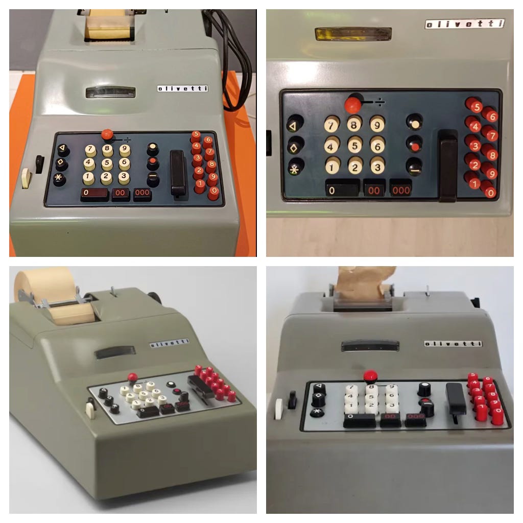 After the war, Olivetti expanded into the calculator market with Divisumma 14 in 1947. The desktop electro-mechanical calculator could perform addition, subtraction, multiplication, and division and print the results. It was the first printing electric calculator to be capable of all four functions and the first to include a negative balance function. The Divisumma 14 also offered a few convenience features. The user could input data merely for reference in print and not calculation, a calculate without print option to avoid polluting the print with unnecessary data, and a stop for avoiding infinite loops such as when attempting to divide by zero. It was offered in beige and blue. The industrial design came from Marcello Nizzoli while the mechanical and electrical design came from autodidact Natale Capellaro. Various iterations on this design were then produced with fewer features at lower price points. Other variations were created specifically for currencies. Later revisions on the design would also add a joystick rather than the two sliders for cursor placement. This design was later refined with Divisumma models 22, 24, and 26.