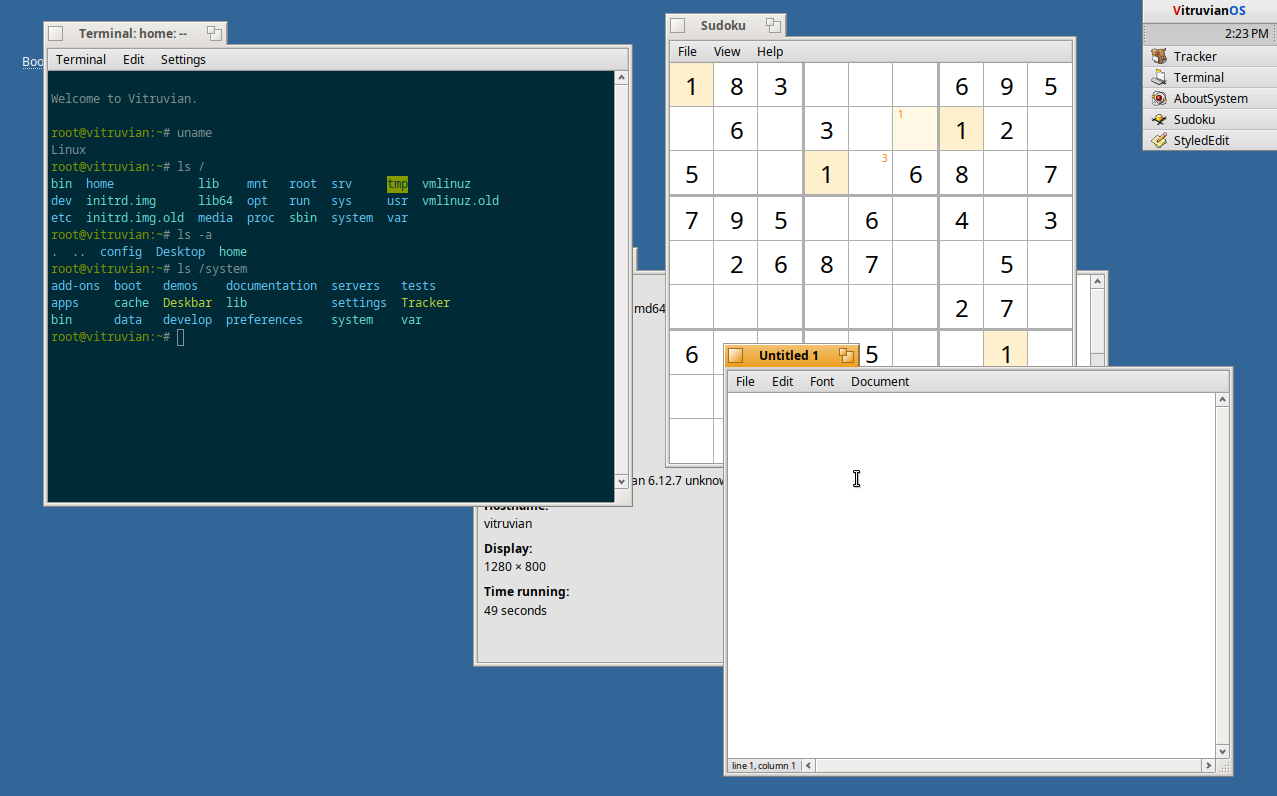 Completely free of cost and fully open source. Vitruvian stands on the shoulders of giants — built on Linux and inspired by Haiku and BeOS.